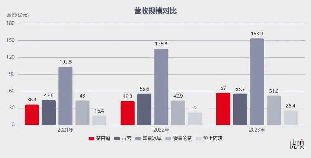 2023年,在有公開數(shù)據(jù)的幾家茶飲品牌中,茶百道營收首次超越奈雪的茶,成了行業(yè)第三。