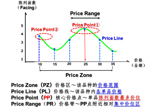 一家零售商的不同價(jià)格點(diǎn)位的選品,比如說,這個(gè)飲用水這個(gè)品類,A超市有1元、1.5元、2元到3元的不同價(jià)格線(PL),1-3元是飲用水的價(jià)格帶(PZ)。以A超市的1元、1.5元、2元和3元的4條價(jià)格線中,我到底是應(yīng)該分別以什么樣的陳列量(Facing)方式/形式/位置來陳列每一個(gè)價(jià)格線的產(chǎn)品,從而形成有自家特色?