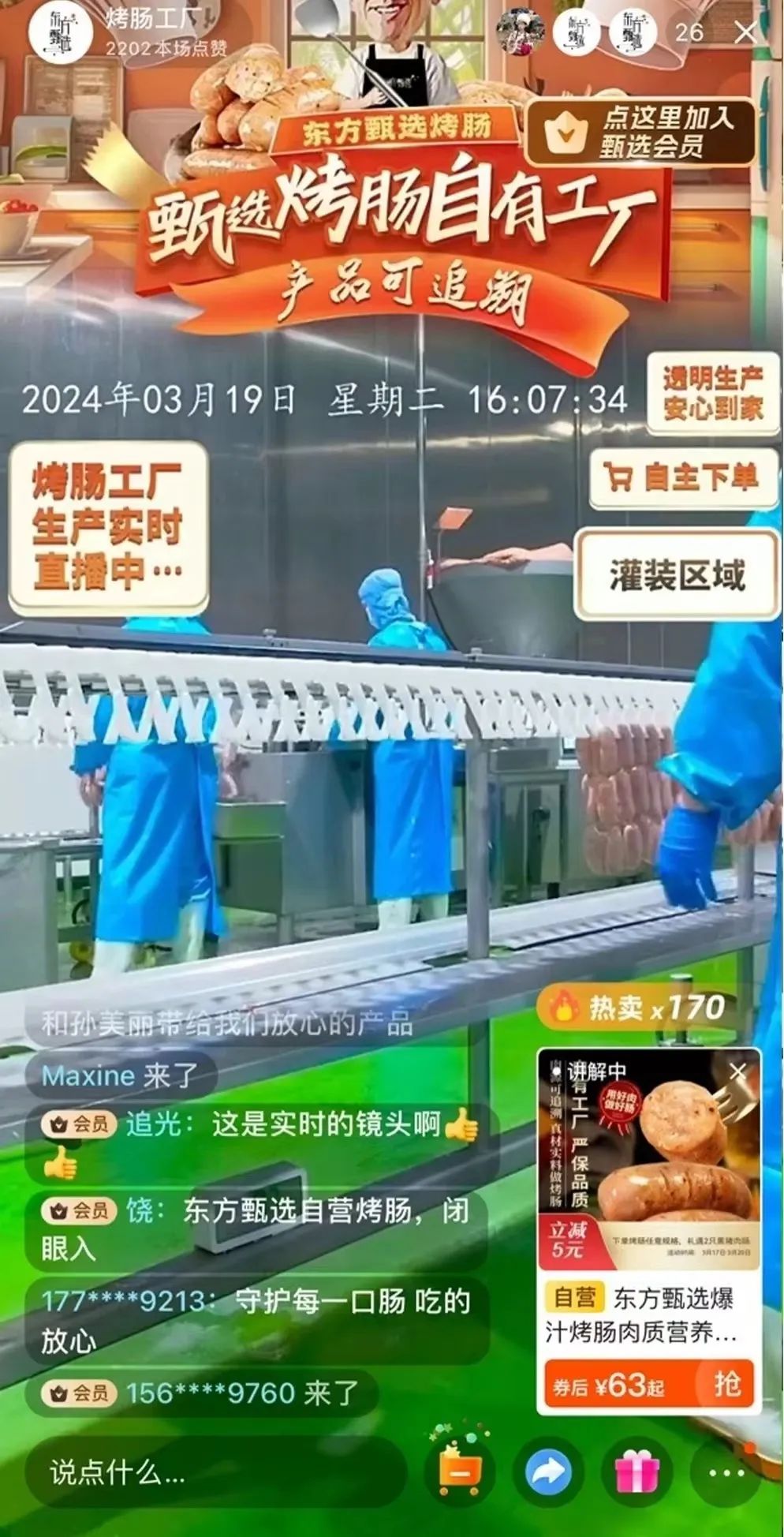 東方甄選自營烤腸工廠直播 圖源:抖音