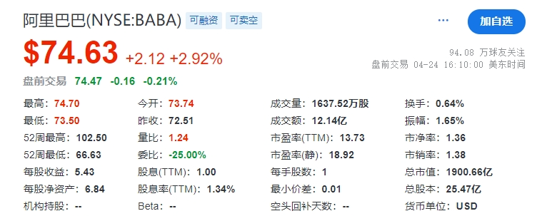 2024年4月24日美股收盤,阿里巴巴最新市值1900.66億美元;拼多多最新市值1694.61億美元;京東最新市值449.98億美元。按照計(jì)算,阿里巴巴市值是京東市值的4.2倍,拼多多市值是京東市值的3.7倍。