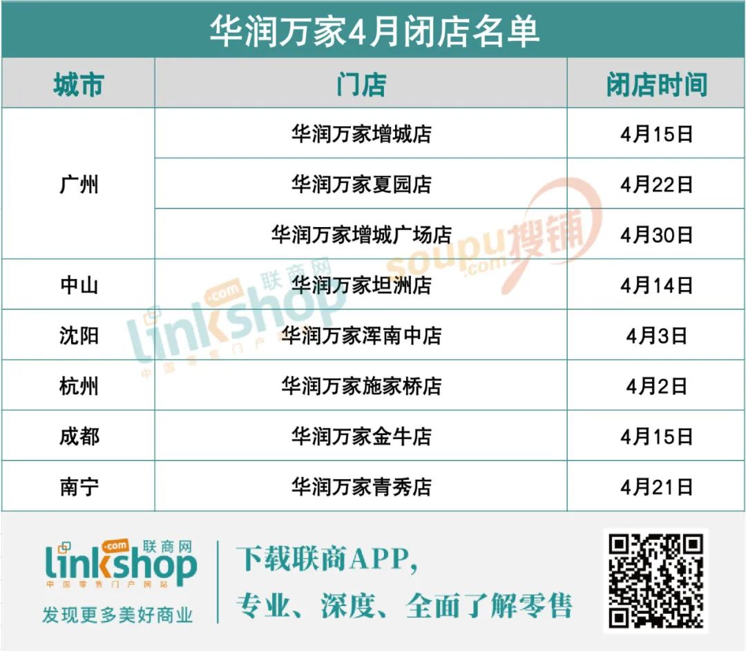 不過,受大環(huán)境和自身經(jīng)營(yíng)策略調(diào)整影響,華潤(rùn)萬家也在不斷關(guān)閉門店。