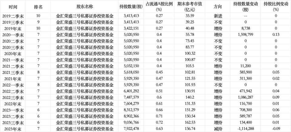 金匯榮盛持股變動情況,數(shù)據(jù)來源Wind,時代周報記者梳理