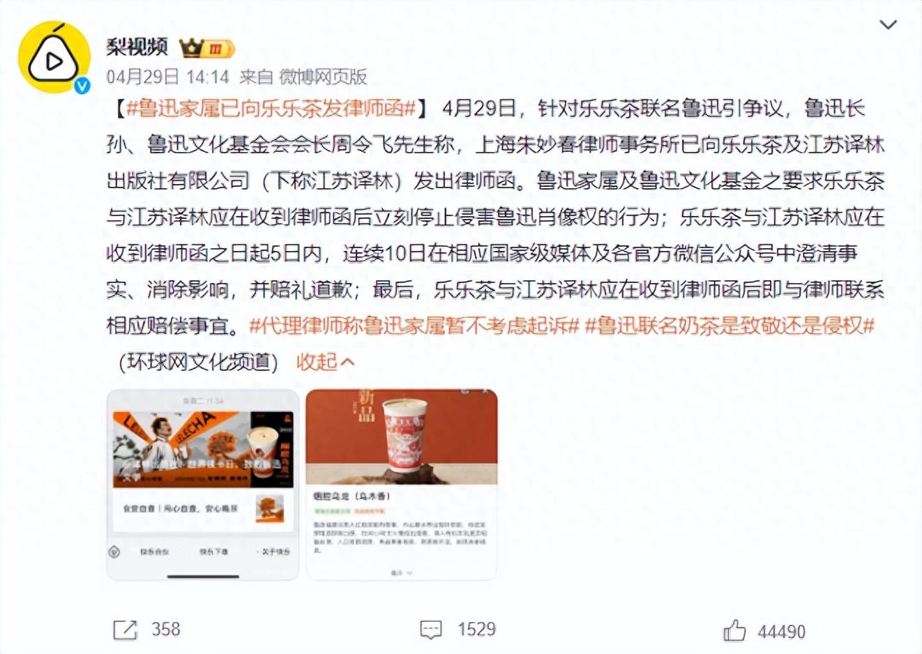 1.樂樂茶與魯迅聯(lián)名,又被吐槽又被告?
