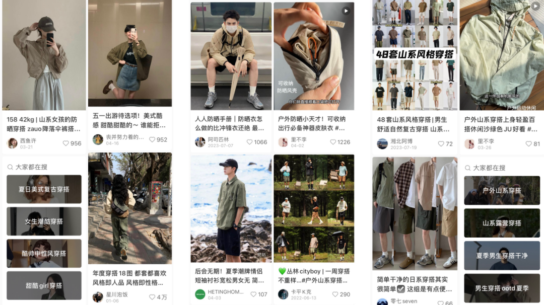 隨著運(yùn)動(dòng)戶外消費(fèi)者購買心智日益成熟,不再局限于品牌和品類詞,而是更偏好風(fēng)格、場景等細(xì)分需求。其中,涌現(xiàn)出來一些非常小眾、獨(dú)特的風(fēng)格,如潮酷、部落、山系風(fēng)格快速增長。