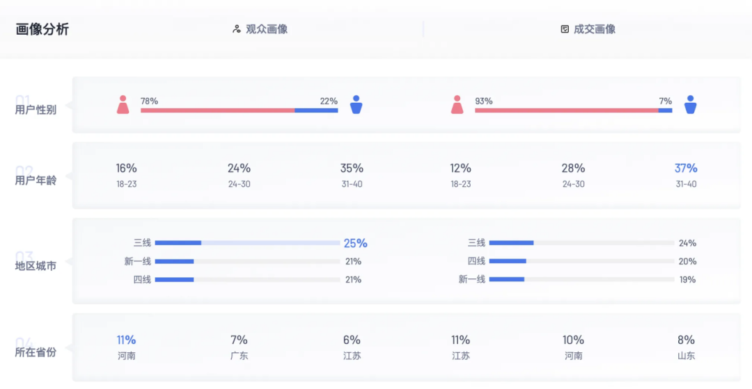 根據(jù)考古加數(shù)據(jù),韓束消費者中,女性占比逾九成,24-30歲占比28%,31-40歲占比37%,三四線城市占比為54%。這部分人群正是價格敏感型消費者,她們構成韓束紅蠻腰的消費主力。