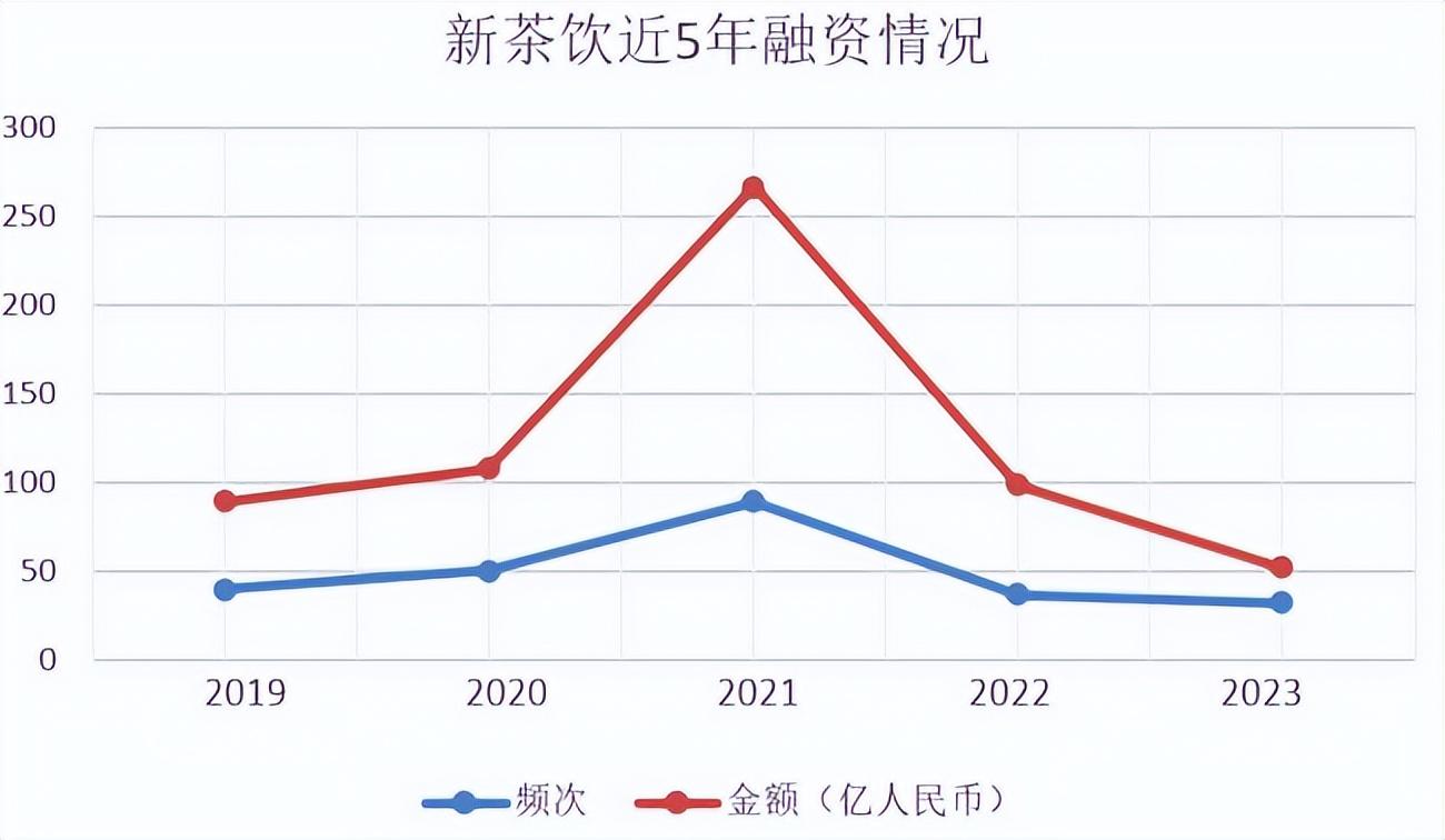 巔峰過后,2022年、2023年,新茶飲領(lǐng)域的融資頻次、融資金額雙下降;2023年公開披露金額僅為13.5億元,為“近5年最低”。