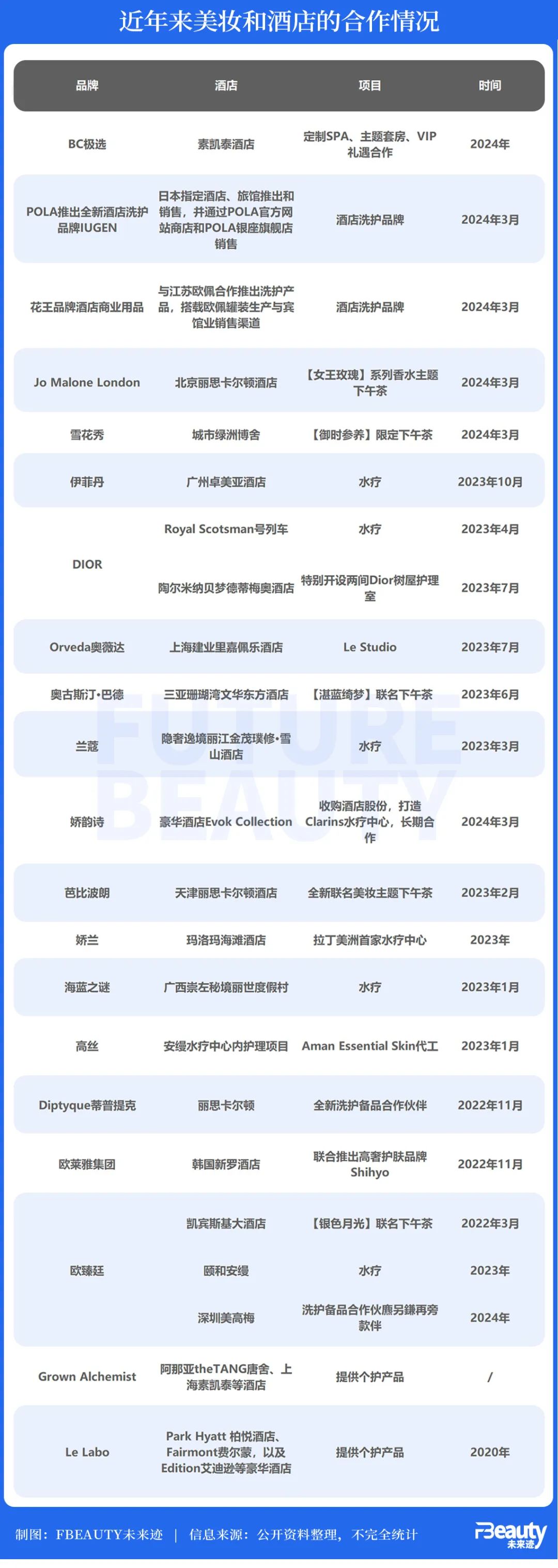 但《FBeauty未來跡》梳理發(fā)現(xiàn),根據(jù)目的不同,高端美妝品牌與奢華酒店的合作方式,除了做營(yíng)銷話題,更多的是真正依托于酒店渠道做生意,且后者的合作程度正在日益加深和多元化。