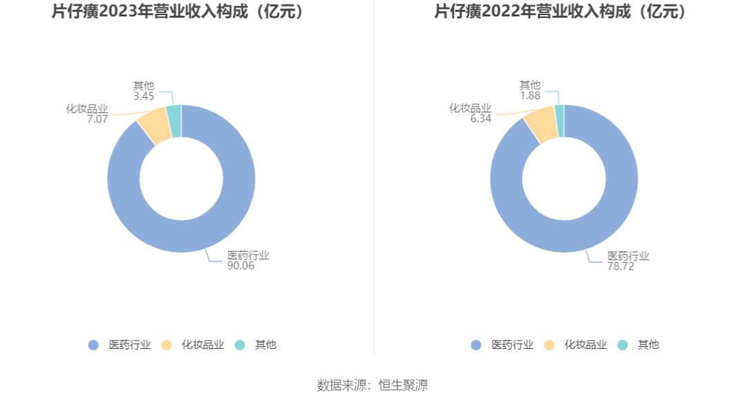 2023年年報(bào)數(shù)據(jù)顯示,片仔癀營業(yè)收入達(dá)100.6億元,同比增長15.6%,凈利潤27.97億元,同比增長13.15%。其中,化妝品模塊收入7.07億元,同比增長11.42%,占營業(yè)收入的7.03%,成為企業(yè)收入占比的第二大業(yè)務(wù)。