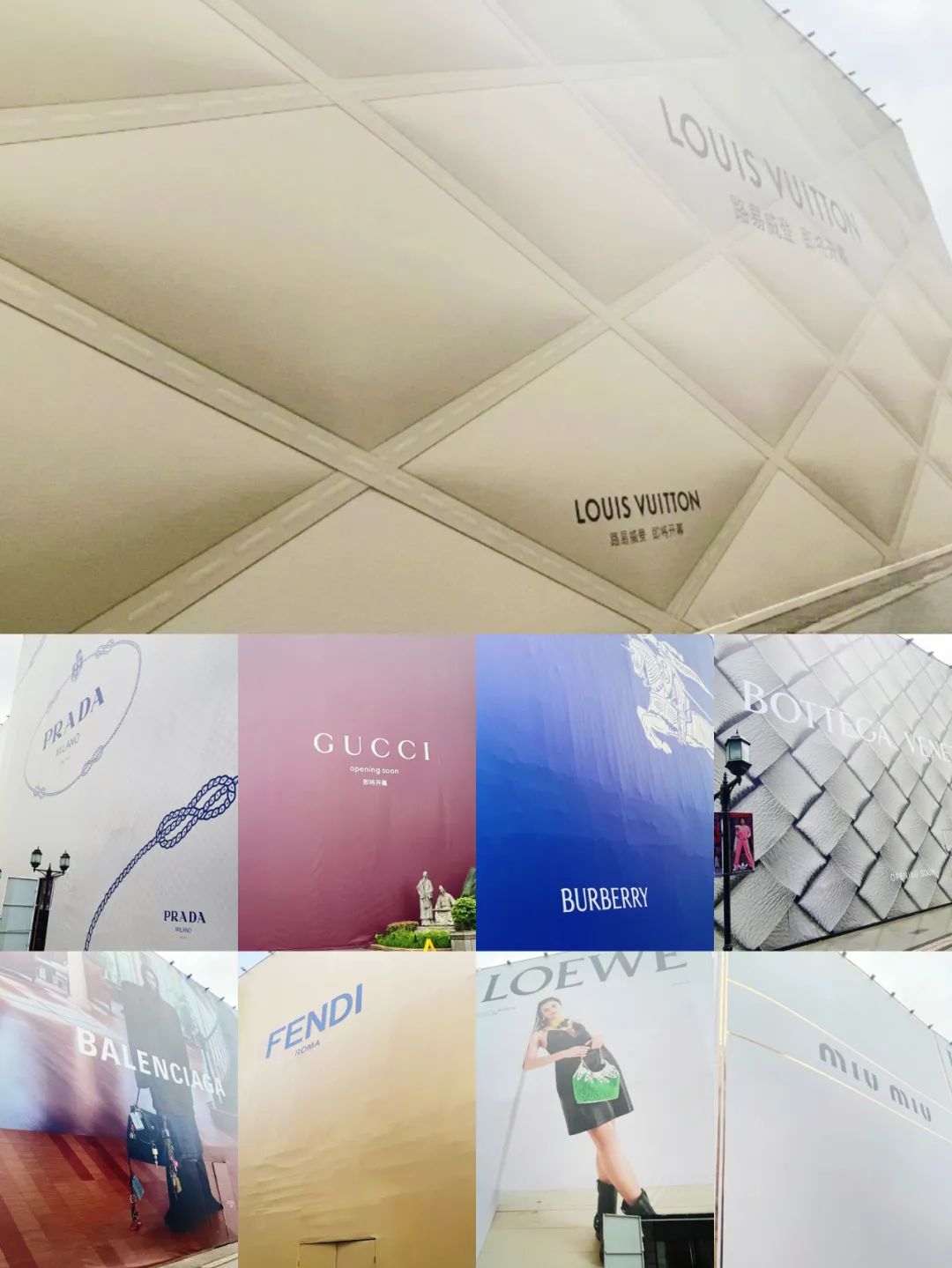 以下是街區(qū)部分目前已上logo的品牌(后續(xù)新增了CELINE圍擋,該品牌在BV隔壁,未拍攝,加上CELINE,上logo的已有30家):