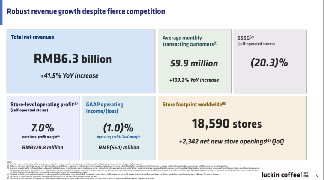 瑞幸咖啡最新財(cái)報(bào)顯示,一季度凈開(kāi)門(mén)店數(shù)為2342家,環(huán)比增長(zhǎng)14.4%,但自營(yíng)門(mén)店同店銷售增長(zhǎng)率為-20.3%,去年同期為29.6%。 自營(yíng)門(mén)店?duì)I業(yè)利潤(rùn)率為7.0%,而去年同期是25.2%。
