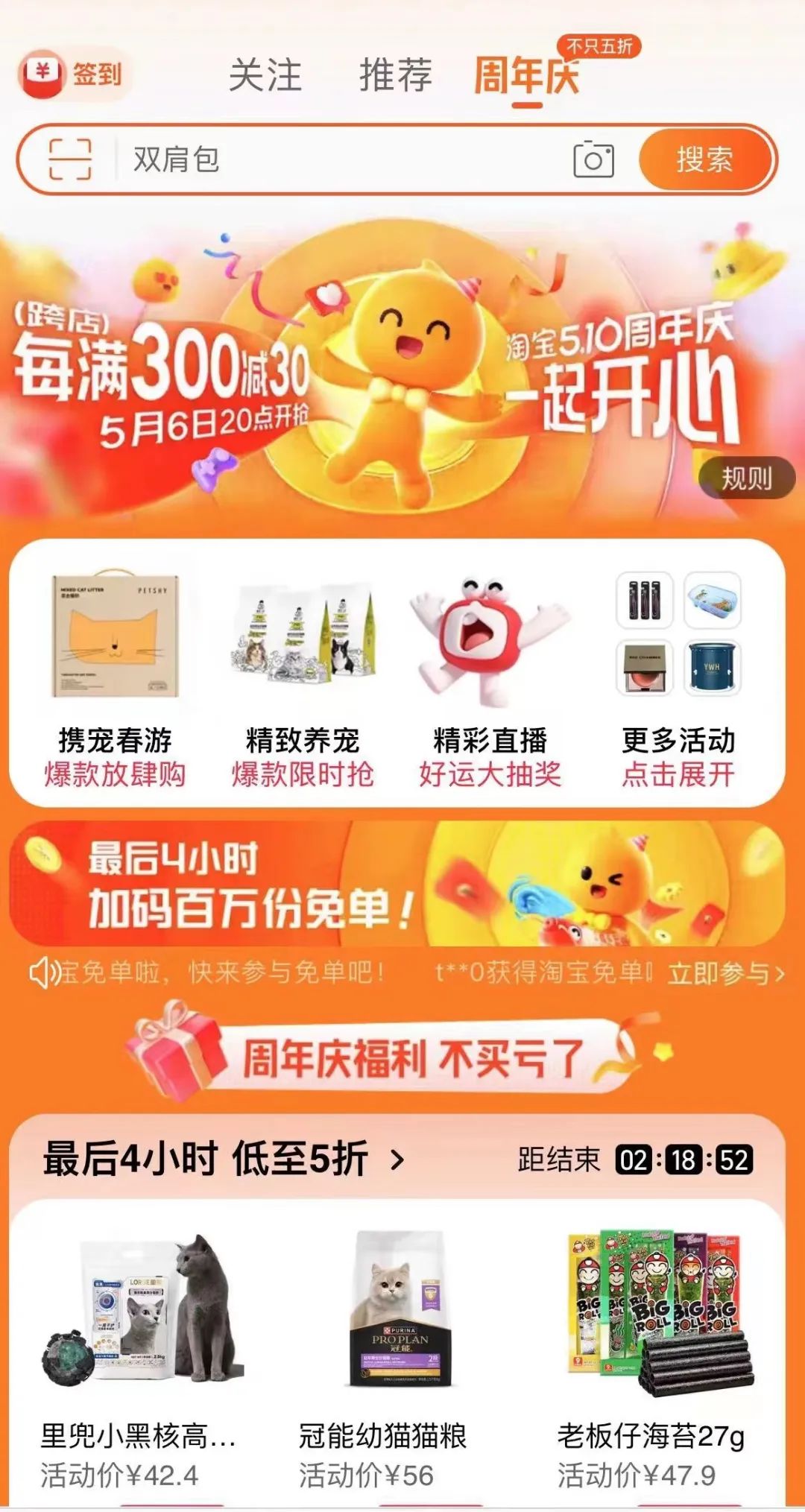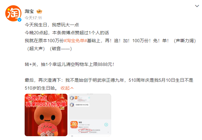 5月6日,大量淘寶用戶突然被大規(guī)模免單,此前官方并未發(fā)布任何活動(dòng)玩法和游戲規(guī)則,隨后官方宣布,淘寶周年慶開(kāi)啟了答題免單活動(dòng),據(jù)悉,活動(dòng)周期內(nèi)預(yù)計(jì)將發(fā)放100萬(wàn)個(gè)免 單名額。加上五一、母親節(jié)等各種節(jié)日促點(diǎn),今年上半年的淘天似乎一直在“打折”。