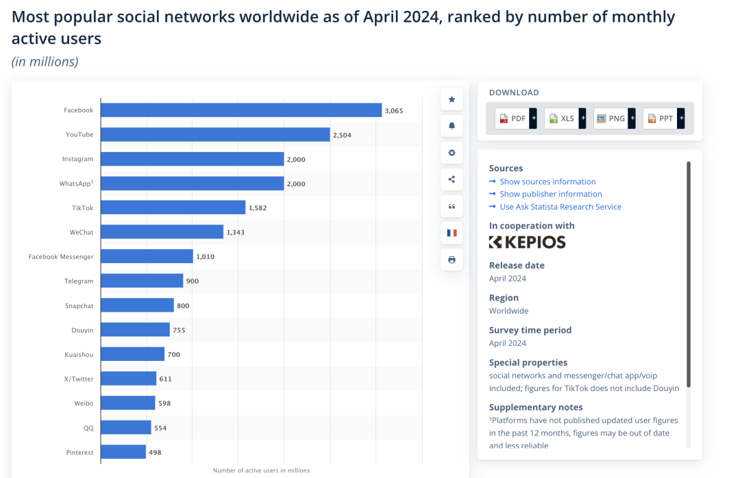 成為全球第5大最受歡迎的社交App,前4名分別是Facebook、YouTube、Instagram和WhatsApp。