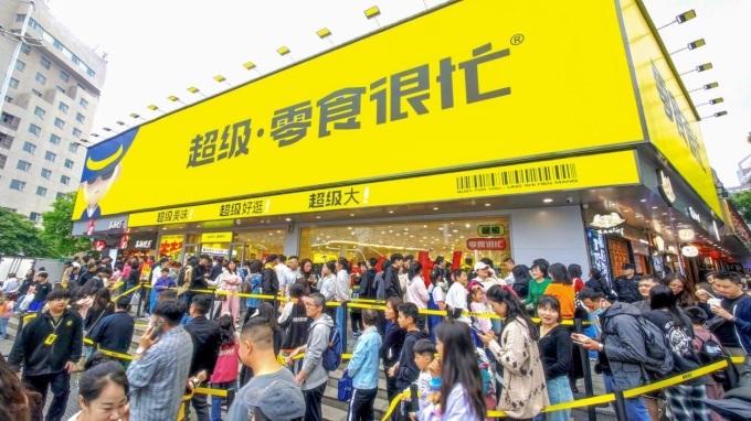 2024年的五一假期間(5.1-5.5),“超級零食很忙”與“零食很大”雙店總營業(yè)共計超715萬元!俺壛闶澈苊Α笨偁I收達(dá)397萬元,單日營收最高超91萬元,再次刷新國內(nèi)零食單店單日營收紀(jì)錄。“零食很大”則以280平米的營業(yè)面積,五天總營收超318萬元,創(chuàng)下零食行業(yè)的“坪效”新記錄。