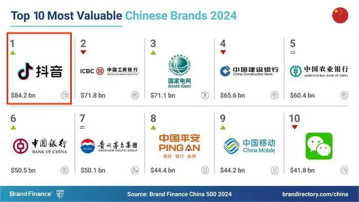 近日,國際著名品牌價(jià)值評估咨詢機(jī)構(gòu)Brand Finance正式發(fā)布《2024年中國品牌價(jià)值500強(qiáng)》報(bào)告,抖音拿下第一名,成為全國最具價(jià)值的品牌。根據(jù)報(bào)告數(shù)據(jù),2024年抖音的品牌價(jià)值實(shí)現(xiàn)了28%的增長,達(dá)到了6083億元。