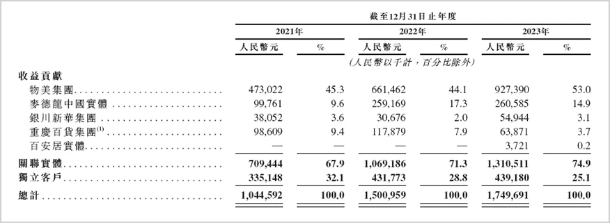 2021-2023年期間,多點(diǎn)來自關(guān)聯(lián)客戶的收入從7.09億增加到了13.1億,占營收比重從67.9%提升至74.9%。