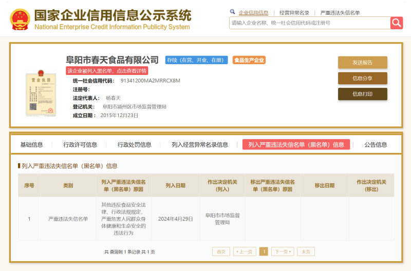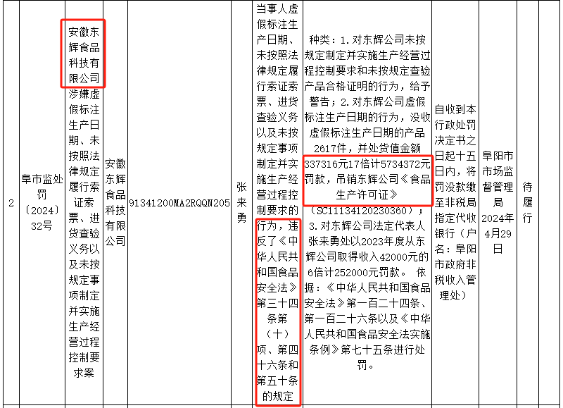 圖源:阜陽市市場監(jiān)督管理局行政處罰信息公開表