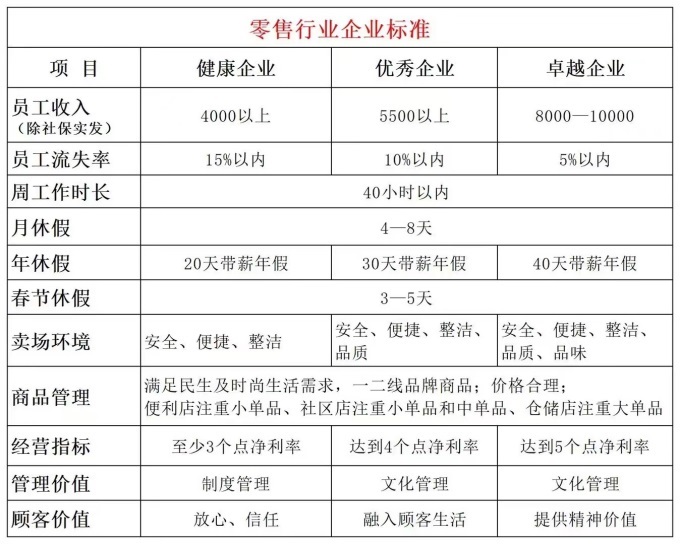 在零售特別是超市行業(yè)尋求突破的當下周期里,如果所有的企業(yè)都能達到這樣的標準,員工收入能夠到達合理健康的水平,員工與企業(yè)、與顧客、與合作伙伴之間就一定會產(chǎn)生高效、良性的循環(huán);信任之后,一切就會有無窮的正能量,就會為我們的企業(yè)、城市、社會乃至整個國家,帶來持續(xù)不斷的美好。