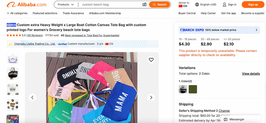 阿里巴巴國際站商品截圖