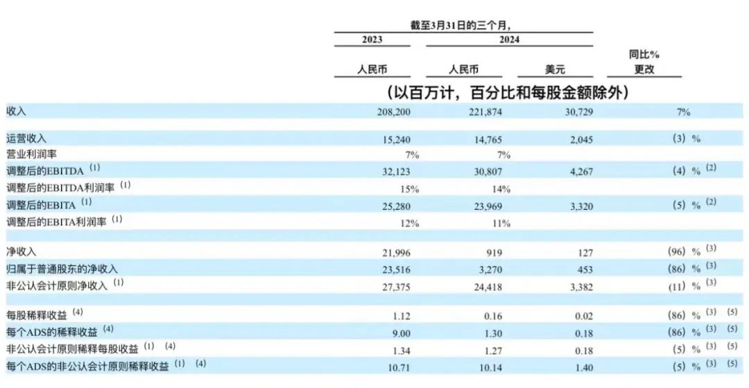但變革勢必伴隨著不安因素,財報顯示,調(diào)整后凈利潤下滑11%,營業(yè)成本同比增長1%至67%,雖然并不排除阿里正處于部分業(yè)務(wù)的投入期(阿里云成本增加、淘天取消付費項目),但也側(cè)面反映出,從賬面角度來看,阿里還需要等待真正盈利的大幅增長。