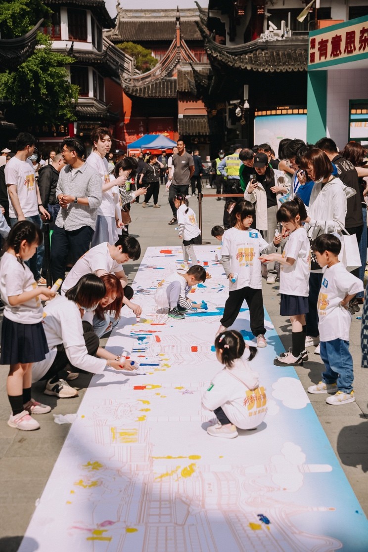 5月15日,一張巨幅畫(huà)卷在上海豫園的中心廣場(chǎng)上展開(kāi),近百組家庭共同繪制“星式生活”畫(huà)卷,點(diǎn)亮“復(fù)星之星”。與此同時(shí),在如東上河印巷、天津復(fù)悅里、重慶復(fù)悅薈等20城商圈及社區(qū),共千組家庭同步落筆,萬(wàn)千“星”火共同繪制幸福城市畫(huà)面,傳遞“星式”美好生活 。