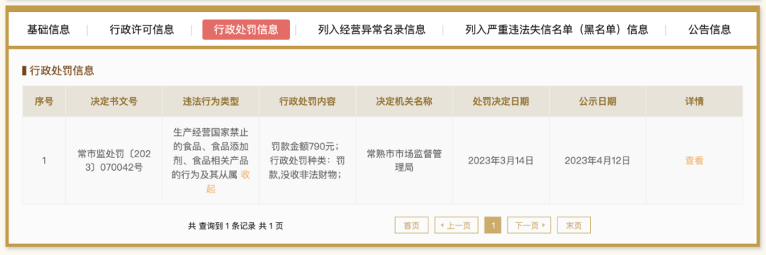 該門店的違法類型是“生產(chǎn)經(jīng)營國家禁止的食品、食品添加劑、食品相關(guān)產(chǎn)品的行為及其從屬”,具體受罰原因是銷售已過期的賓格瑞草莓味牛奶飲料。該受罰公司已經(jīng)于今年3月7日被注銷。