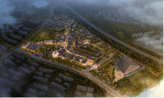 以良渚原始刻符為研究基礎,玉鳥集作為良渚文化村的文旅板塊,一方面在規(guī)劃理念上尊重良渚先民與自然山水和諧相處的聚落文脈,確定了主題村落多功能復合的小鎮(zhèn)模式。在空間布局完全保留了拆遷前原住民的村落肌理,連交通系統、場景尺度都與原有村落一脈相承。但在建筑風格、商業(yè)形態(tài)上卻努力表達當代最新的時尚愛好和審美情緒。另一方面,玉鳥集以生活、生產、生態(tài)“三生融合”理念,探討從夢想居住到美好生活當代展示這個大課題,力求在歷史和現實的交相輝映上創(chuàng)造新方法,提供新經驗。