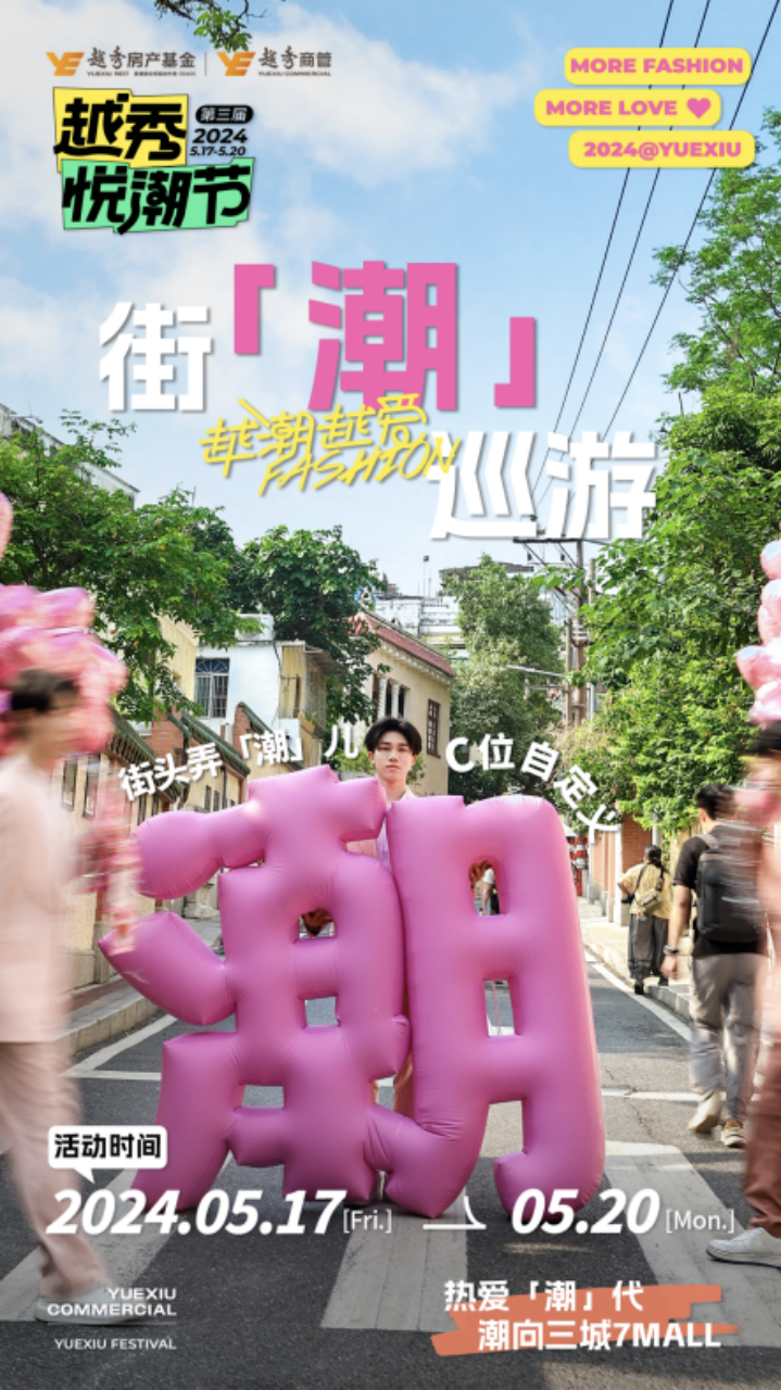 5月17日至5月20日,越秀房產(chǎn)基金、越秀商管旗下三城7個(gè)商場項(xiàng)目,聯(lián)手超500家品牌商戶共同推出第三屆「越秀悅潮節(jié)」,率先引爆520節(jié)點(diǎn)的消費(fèi)氣氛。延續(xù)前兩年“自造節(jié)”的熱度,本次悅潮節(jié)彰顯不同潮流生活方式的熱愛與表達(dá),持續(xù)迸發(fā)潮流消費(fèi)活力。(以下簡稱“悅潮節(jié)”)