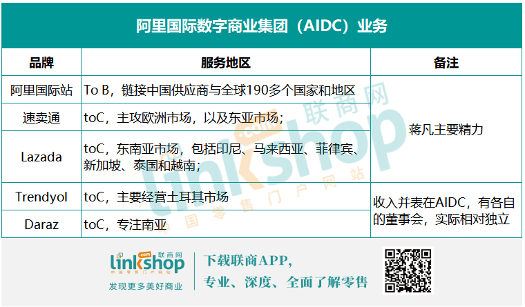 2021年底,阿里重新規(guī)整了“海外數(shù)字商業(yè)板塊(GDC,Global Digital Commerce)”業(yè)務(wù),由重新回歸的蔣凡統(tǒng)管;接手之后,蔣凡將AIDC的模式定義為“跨境+本地化”,從業(yè)務(wù)覆蓋區(qū)域來看: