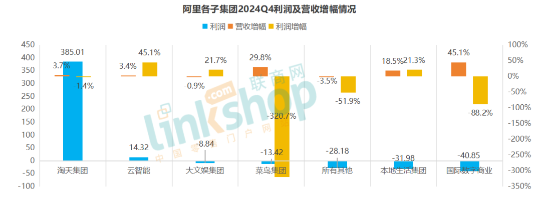 淘天集團全年營收增幅5.2%,到Q4變成3.7%;利潤增幅全年3%,到Q4變?yōu)?1.4%,說明從近期態(tài)勢看,包含春節(jié)高峰期的Q4并未給全年帶來大的增量支持。財報中,淘天的客戶管理收入倒是一個好的趨勢,只是回歸用戶、籠絡(luò)商家,低價和服務(wù)突破,抖音、京東和拼多多都在做,顯然,淘天的未來,仍是要向內(nèi)在質(zhì)量提升推進。