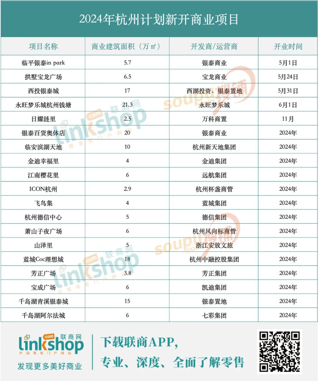 當然,隨著未來杭州更多商業(yè)項目的入市,存量也會擴大,競爭愈發(fā)激烈。據(jù)聯(lián)商網(wǎng)零售研究中心統(tǒng)計,2024年杭州預計有19個商業(yè)項目會新開,預計新增商業(yè)體量164.7萬㎡,5月拱墅寶龍廣場、西投銀泰城都將開業(yè),永旺夢樂城在杭州錢塘新區(qū)的項目在6月1日也會亮相。