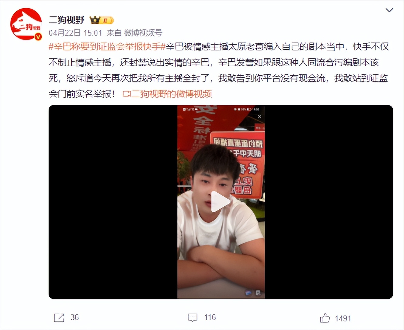4月20日,因直播效果不理想,辛巴在直播間怒斥快手,并指出快手縱容情感主播,很快辛巴的快手賬號(hào)就因?yàn)檠哉摬划?dāng)被封禁。之后辛巴換到辛選集團(tuán)旗下其他主播的直播間,但這些賬號(hào)也因?yàn)檫`規(guī)被封禁。有媒體報(bào)道稱,憤怒的辛巴放出狠話,要是平臺(tái)敢把辛選集團(tuán)所有的主播賬號(hào)都封了,他就要到香港證監(jiān)會(huì)門前實(shí)名舉報(bào)。