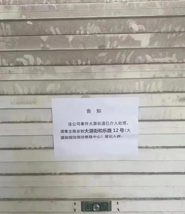 如今,“少女凱拉”倉庫里卷閘門緊鎖,貼著一張告示,“該公司事件大源街道已介入處理,請事主移步到大源街和樂路12號(大源街綜治信訪維穩(wěn)中心)登記入群!