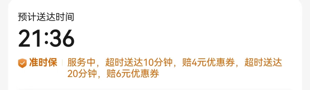 為保障配送時(shí)效,京東秒送還推出“準(zhǔn)時(shí)!狈⻊(wù),針對(duì)超時(shí)訂單進(jìn)行賠付。如果未能按照約定時(shí)間送達(dá),超時(shí)10分鐘賠付4元優(yōu)惠券,超時(shí)20分鐘賠付6元優(yōu)惠券,將在訂單完成時(shí)自動(dòng)賠付。