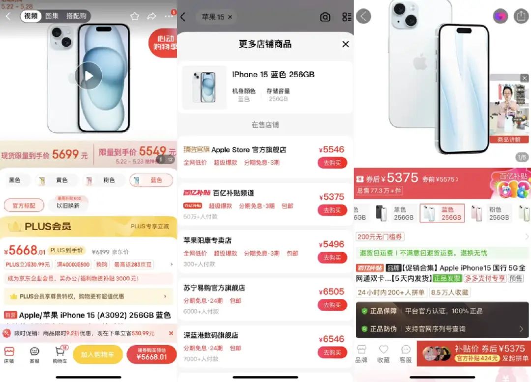 京東(左)、天貓(中)、拼多多(右)