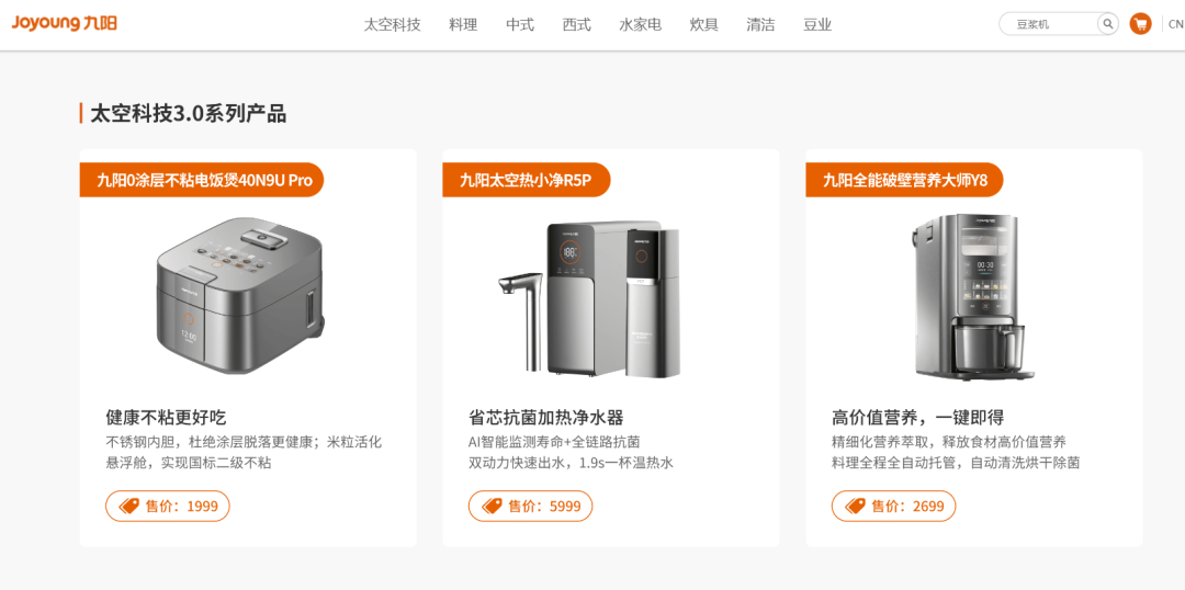 不可否認(rèn),九陽的0涂層電飯煲、變頻輕音破壁機以及太空科技凈水器等單品在各自領(lǐng)域都達(dá)到了領(lǐng)先水平。