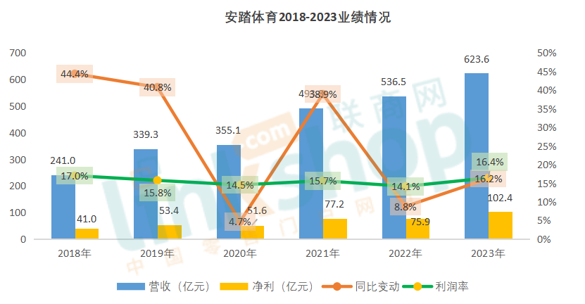 A、安踏體育:營(yíng)收健康,凈利增長(zhǎng)