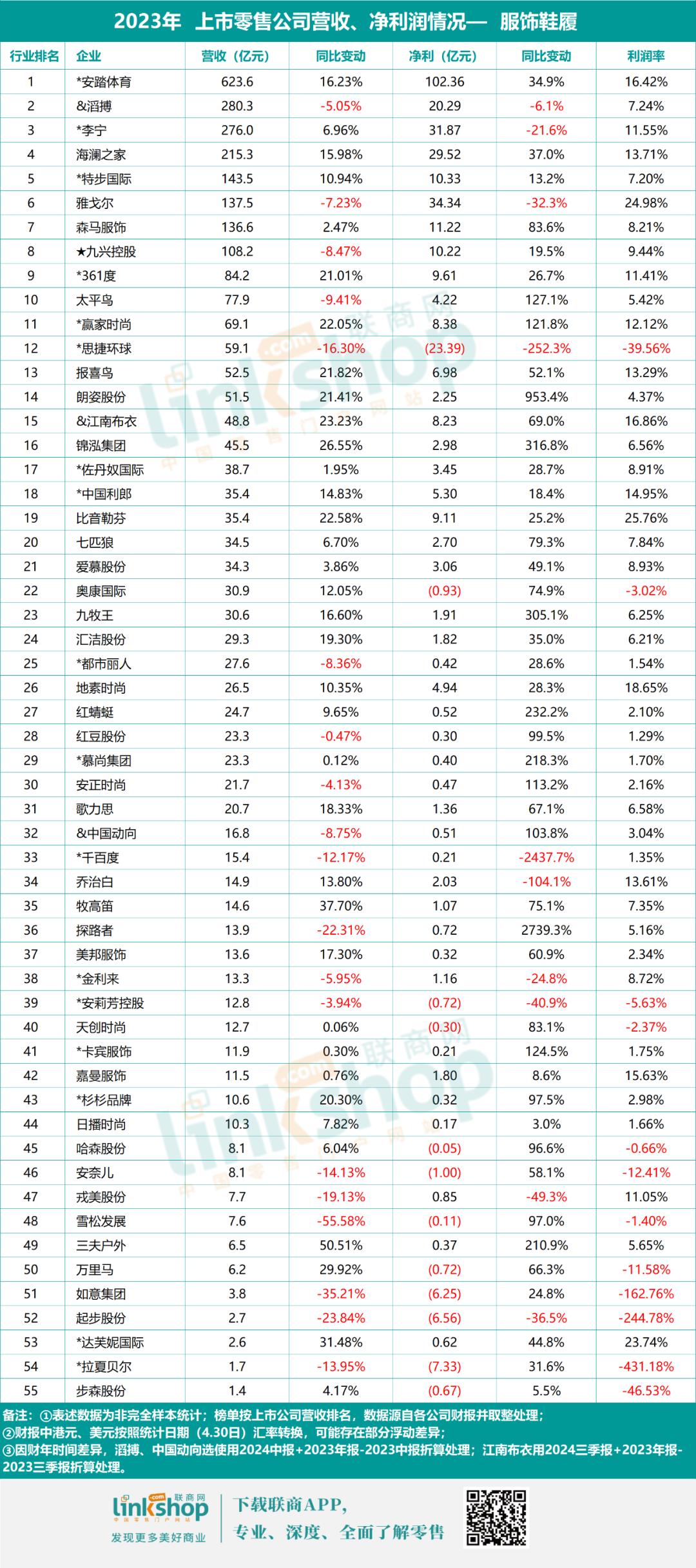 A.有20家品牌,營(yíng)收及凈利均實(shí)現(xiàn)雙位數(shù)增長(zhǎng);特別是江南布衣、比音勒芬和達(dá)芙妮國(guó)際,營(yíng)收及利潤(rùn)增幅都在20%以上,凈利潤(rùn)在14%以上;此外還有安踏體育、地素時(shí)尚及中國(guó)利郎3家企業(yè),凈利潤(rùn)率也超過(guò)14%,并且營(yíng)收及凈利增幅突出。