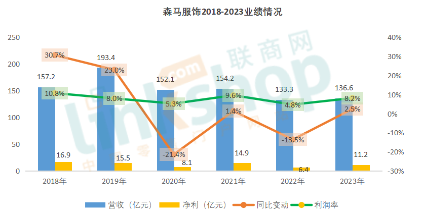C.小于20億營(yíng)收規(guī)模的公司,共24家,總利潤(rùn)率-5.8%,相對(duì)而言經(jīng)營(yíng)表現(xiàn)略差,24家品牌中有11家營(yíng)收出現(xiàn)下滑、10家虧損、6家出現(xiàn)凈利下滑,金利來(lái)、安莉芳控股、戎美股份、起步股份四家企業(yè)營(yíng)收凈利雙雙下降;而如意集團(tuán)、拉夏貝爾、步森股份虧損嚴(yán)重異常。
