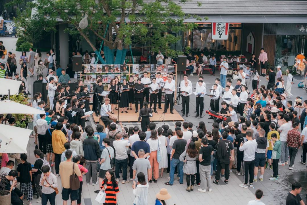 在社交符號(hào)上,玉鳥(niǎo)集聚焦在地文化、先鋒藝術(shù)、大眾演藝,已經(jīng)成功策劃了跨界市集、藝術(shù)策展、主題論壇、藝文演出、良渚櫻花季、露營(yíng)微野等多元藝文活動(dòng),成為杭城全新的藝文潮流策源地。更主要的是,高頻和高熱度的活動(dòng)模糊了商業(yè)運(yùn)營(yíng)中營(yíng)銷節(jié)點(diǎn)的概念,成為了良渚“村民”及周邊居民“家門(mén)口理想生活”的一部分。
