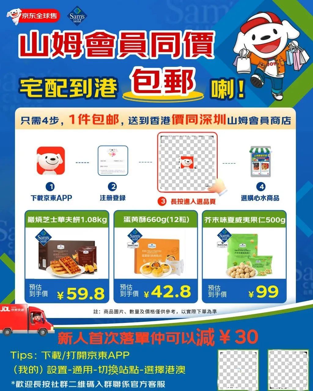值得注意的是,京東港澳專(zhuān)用版也已推出山姆包郵服務(wù),只要在京東平臺(tái)上購(gòu)買(mǎi)山姆貨品,一件即可包郵到港送貨上門(mén),且用戶(hù)無(wú)需成為山姆會(huì)員,亦可享深圳山姆會(huì)員商店同價(jià);同時(shí)沒(méi)有額外運(yùn)費(fèi),新會(huì)員首次下單還可享30元折扣優(yōu)惠。