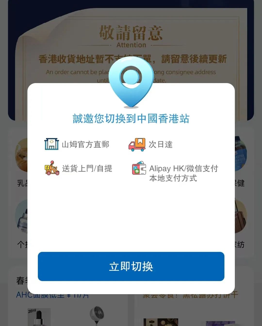 目前,進(jìn)入山姆APP,將地址選為香港后會(huì)直接切換為山姆香港APP頁(yè)面,字體會(huì)自動(dòng)轉(zhuǎn)換為繁體字,首頁(yè)有“港人都在買(mǎi)”的榜單推薦入口。
