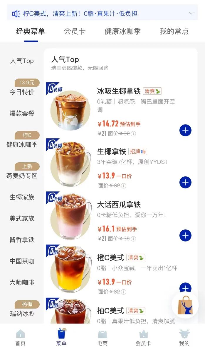 瑞幸小程序截圖