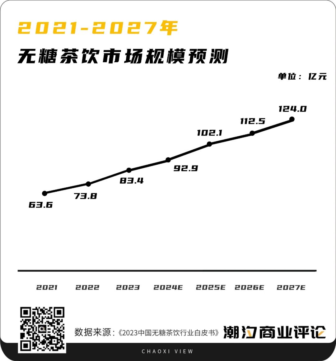 Euromonitor數(shù)據(jù)顯示,預計到2027年,中國無糖茶飲市場規(guī)模將達到124億元,未來五年,中國茶飲市場將進入無糖茶飲高速增長期。