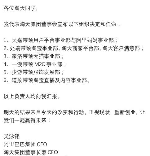阿里集團CEO吳泳銘本人早在去年9月便曾表示,希望在四年內(nèi)由85后、90后成為公司管理的主力軍。