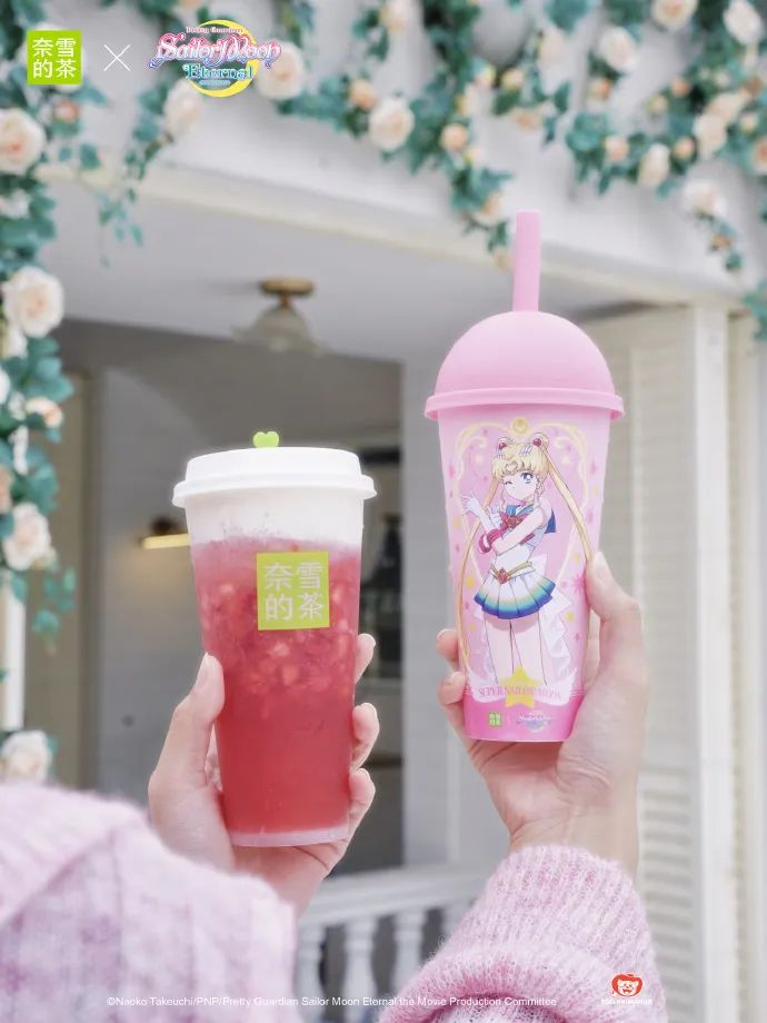 從最近動(dòng)作看,仍不乏“白富美”的意味。比如,聯(lián)合“美少女戰(zhàn)士”IP,推出聯(lián)名霸氣鮮果茶,推介時(shí)強(qiáng)調(diào)“喝霸氣鮮果茶,變身霸氣美少女”。