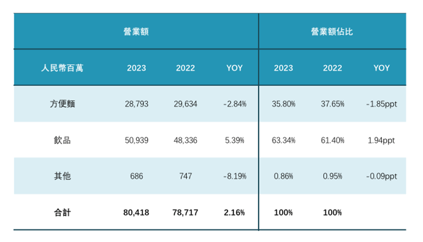 得益于此,2023年,康師傅飲品業(yè)務毛利率為32.1%,同比上漲0.15個百分點。整體而言,康師傅飲品業(yè)務營收509.39億元,同比增長5.39%,占公司總營收的63.34%,已然成為公司重要的營收支柱。
