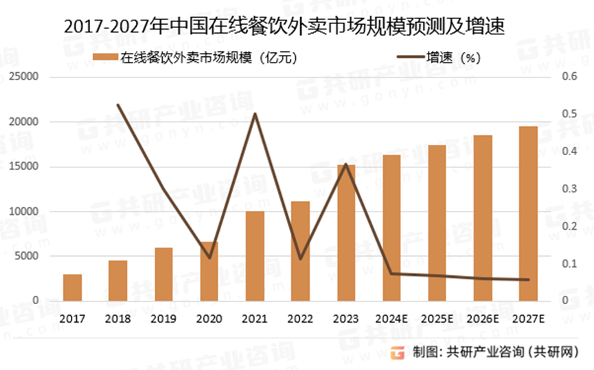 共研產(chǎn)業(yè)咨詢披露的數(shù)據(jù)顯示,2023年,中國在線餐飲外賣市場規(guī)模達15254億元。對比而言,2017年相關市場規(guī)模不足5000億元,六年時間翻了超三倍。