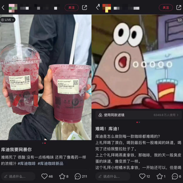 產(chǎn)品層面,不僅近期上新的楊梅系列被一些網(wǎng)友評價“難喝死了”,更有購買過多款庫迪產(chǎn)品的用戶無奈表示,“庫迪是怎么做到每一款都難喝的?”