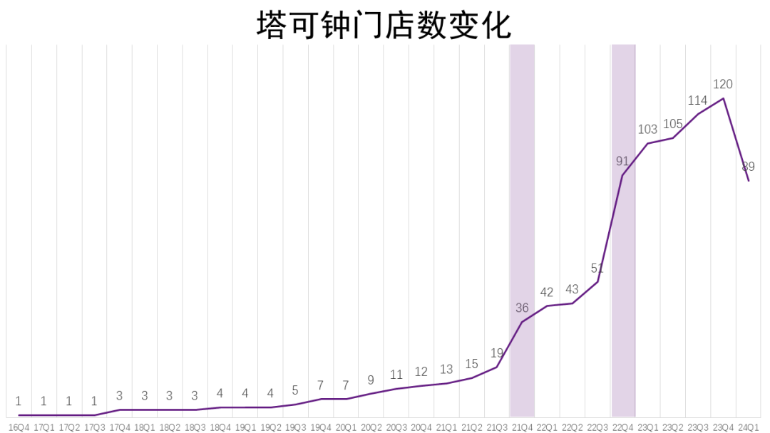 最近,塔可鐘被發(fā)現(xiàn)多地關(guān)店,實(shí)際上,在2024年一季度,小肥羊、Lavazza也出現(xiàn)了收縮情況。黃記煌剛慶祝20周年生日,全球門店數(shù)超600家,但四年前被收購(gòu)時(shí)的門店數(shù)就已達(dá)到這一水平。