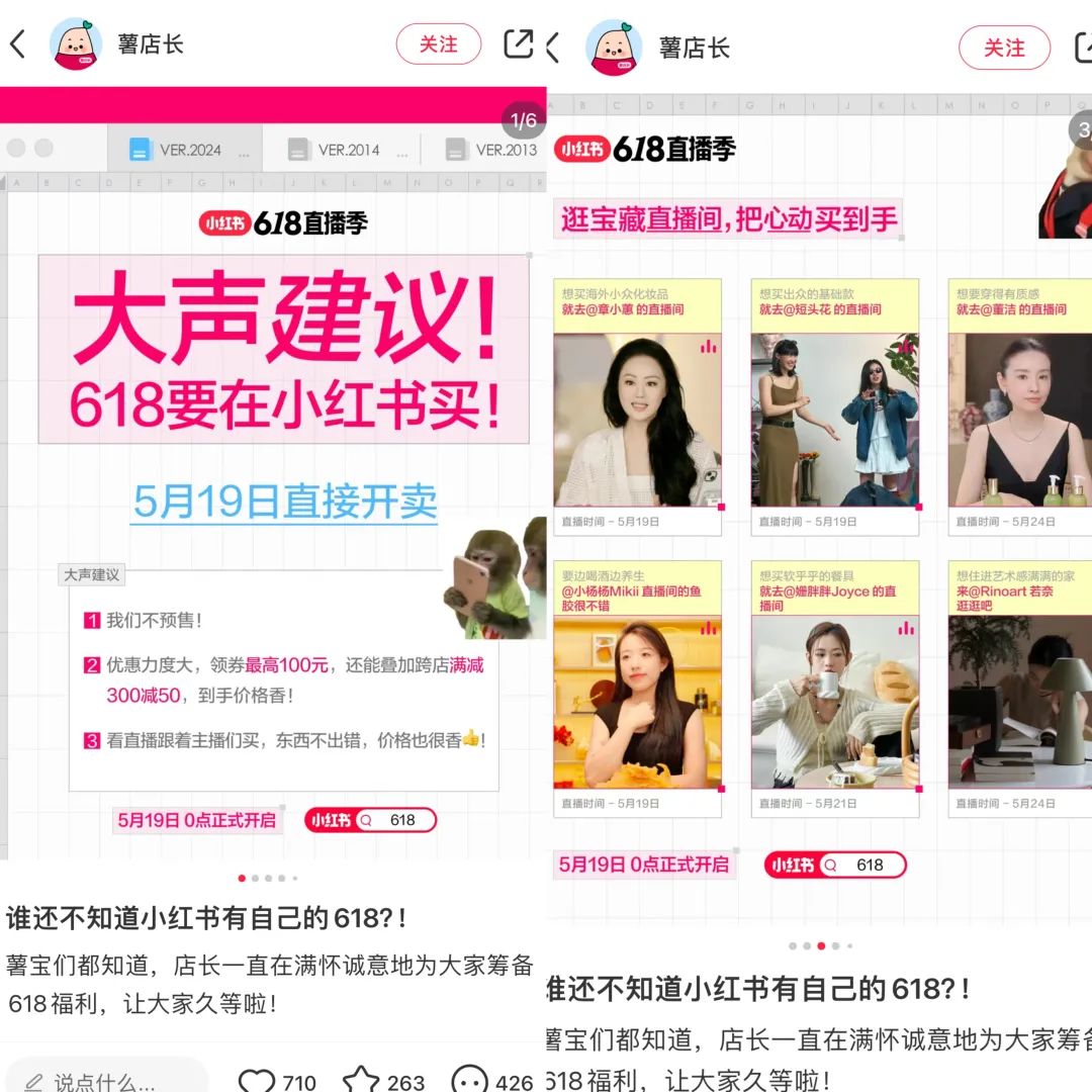 小紅書、B站、視頻號等“新手玩家”的主要目標(biāo)則是在今年618打出聲量,立標(biāo)桿。今年是小紅書和B站的第二次618,視頻號的第三次618,新手的主要特點(diǎn)在于預(yù)熱早、聲量大,借力大促持續(xù)完善電商基建。
